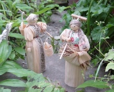 スロバキア プラチスラバ 1998年8月 とうもろこしの皮で作った スロヴァキアの有名な民芸品 高さ約17cm 伝統的な民族衣装を着て、様々な農家の仕事をしている人形が売られている。街の広場の屋台式土産店で、確か2つで2000円ぐらいで購入。 ★★★★★ |